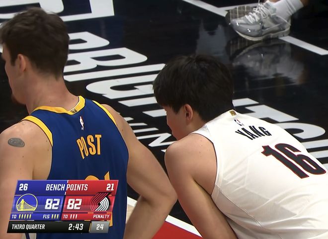 库里28+6+5杨瀚森9分6篮板 勇士再胜开拓者